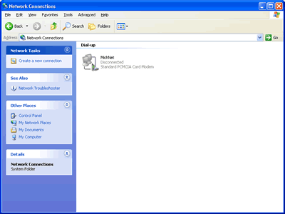 dial-up connection. Right-click on the new