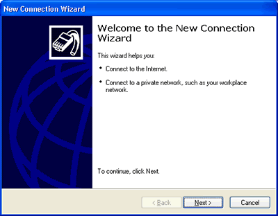 New Connection Wizard Welcome Screen will appear.