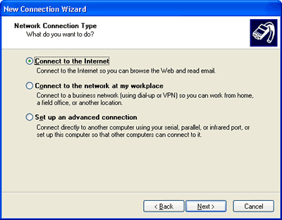 Internet Connection screen will appear. Select