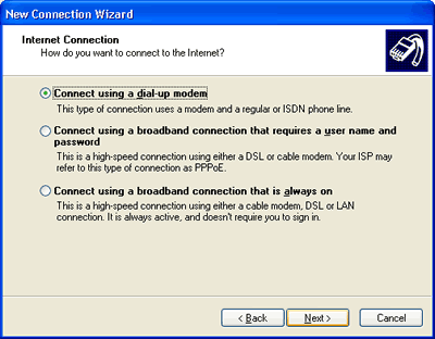 you gave your new dialup connection. If you chose