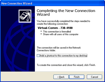 Completing the New Connection Wizard screen will